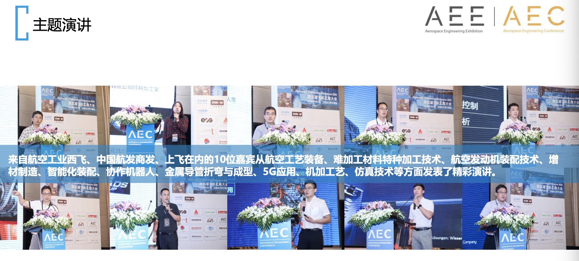 大會共呈現(xiàn)10場主題演講,來自航空工業(yè)西飛、中國航發(fā)商發(fā)、上飛在內(nèi)的10位嘉賓從航空工藝裝備、難加工材料特種加工技術(shù)、航空發(fā)動機(jī)裝配技術(shù)、增材制造、智能化裝配、協(xié)作機(jī)器人、金屬導(dǎo)管折彎與成型、5G應(yīng)用、機(jī)加工藝、仿真技術(shù)等方面發(fā)表了精彩演講。